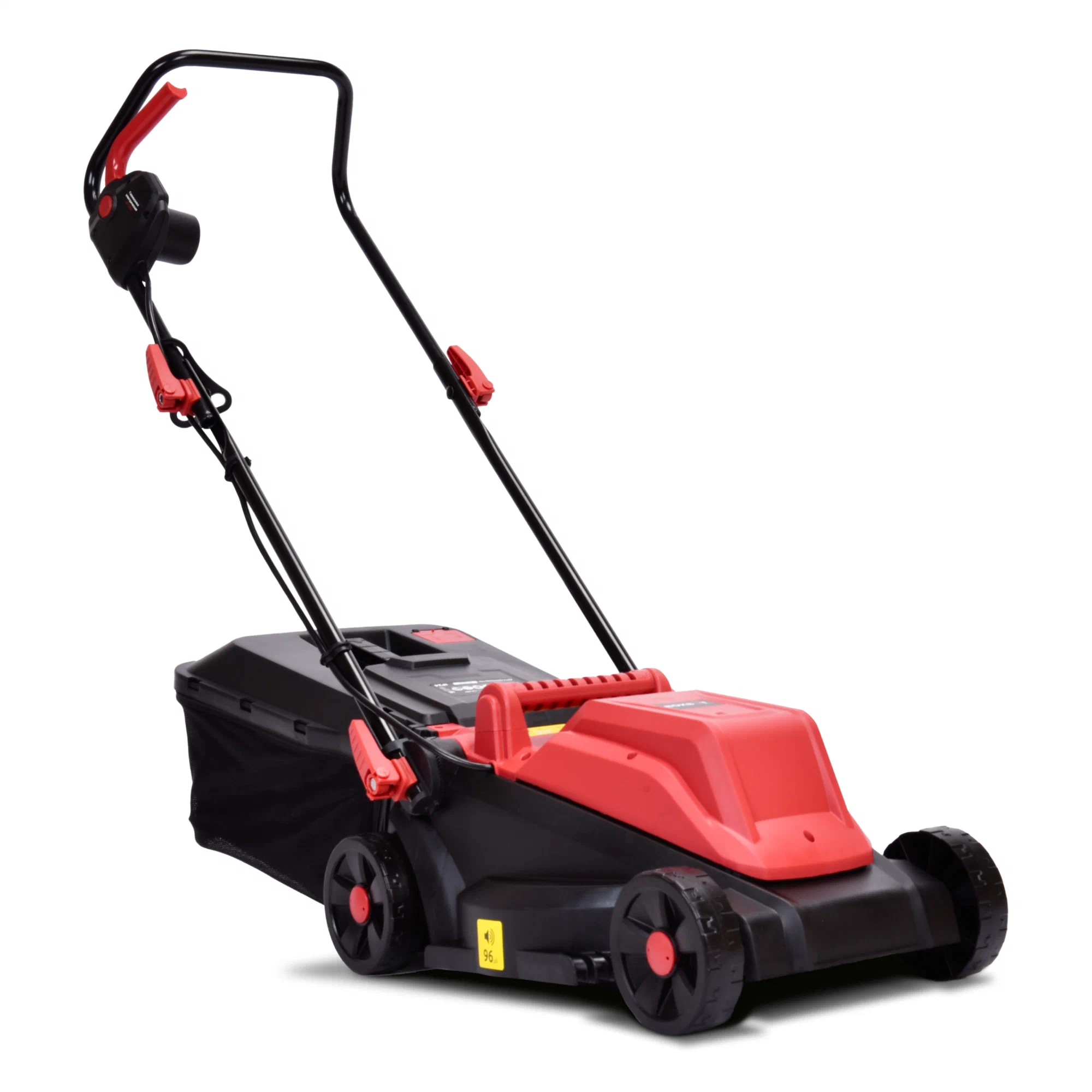 - BOSCH Rotak 32 LI. Эта аккумуляторная рулонная газонокосилка с шириной кошения 32 см рекомендуется для травы на участке до 300 м2. Она обеспечивает высоту кошения 30–60 мм, имеет три варианта настройки и поставляется с жёстким травосборником объёмом 31 литр. Электродвигатель питается от литий-ионного аккумулятора ёмкостью 4 А·ч, заряжаемого за 140 минут. Корпус, дека и колёса изготовлены из пластика, а вес газонокосилки составляет 10,4 кг. В комплект поставки входят аккумулятор и зарядное устройство. KARCHER LMO 18-33. Несамоходная четырёхколёсная газонокосилка с электродвигателем и литий-ионным аккумулятором ёмкостью 5 А·ч. Ширина среза составляет 33 см, а высота скашивания регулируется вручную от 35 до 65 мм. Газонокосилка оснащена функцией мульчирования и мягким травосборником объёмом 35 литров. Габариты газонокосилки составляют 37 x 125 x 99 см, что соответствует весу 11,3 кг. Корпус газонокосилки выполнен из пластика, рукоятка регулируется по высоте.